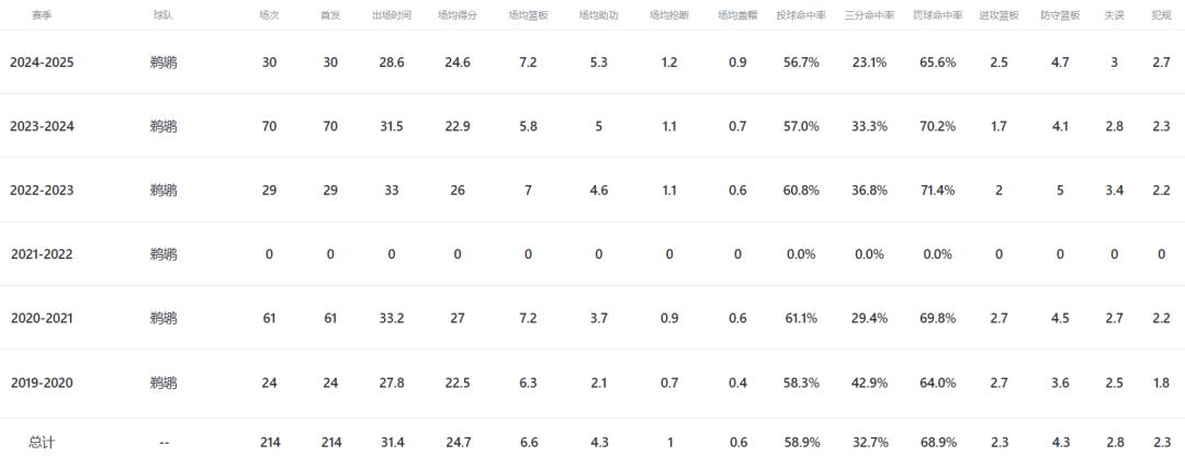 减重成功后,显然能很好地缓解锡安的伤病困扰,过去六个赛季他只参加了214场常规赛,平均每年出场约36场,到目前为止还没有打过季后赛。