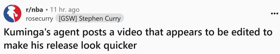 北京时间9月27日,勇士球员库明加近日关闭了个人社交账号,但他的经纪人亚伦·特纳依旧在社交平台上发布库明加的训练视频。值得一提的是,有网友在知名论坛Reddit上点名批评特纳发布的视频,称库明加的训练视频被明显跳帧处理,使得他的出手动作显得更迅速。不得不说,这样的做法确实让人感觉非常尴尬。