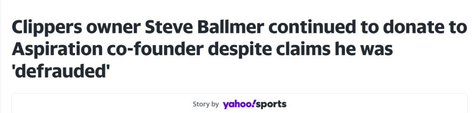 随后,Aspiration显然未能履行与快船签订的合作协议,导致快船在2022-23赛季结束后终止了合作。而在2023年3月,即2022-23赛季即将结束时,鲍尔默仍向Aspiration注资1000万美元——当时Aspiration财务状况不稳,已有19家合作伙伴拒绝投资。