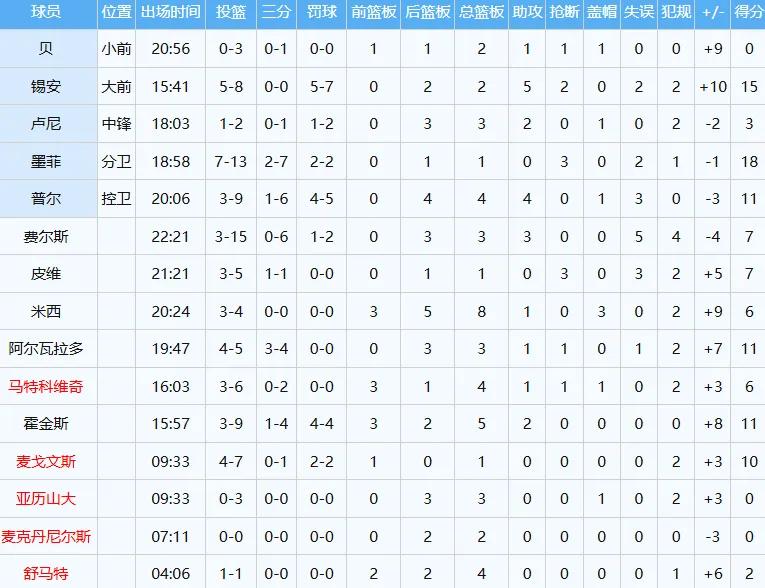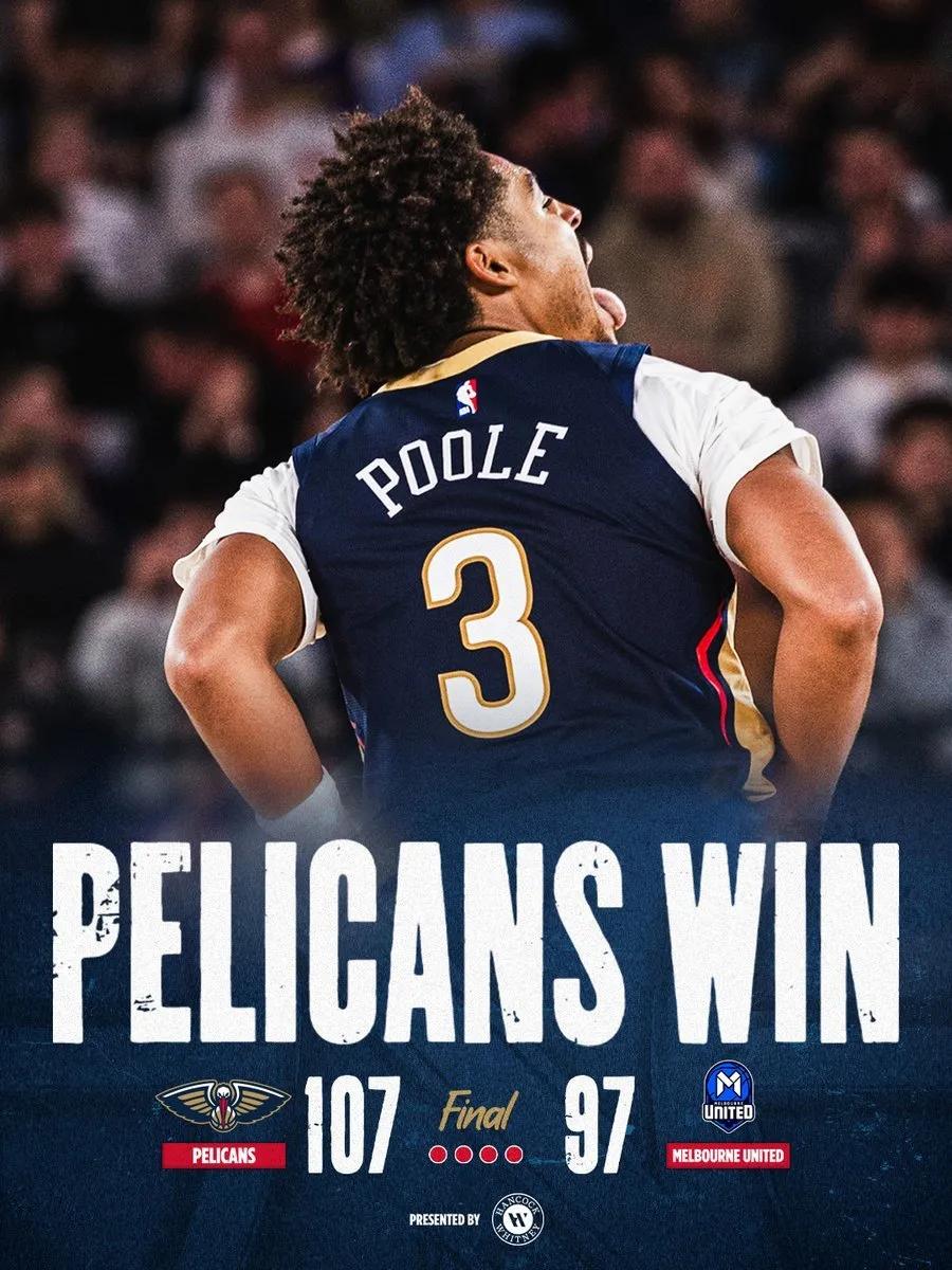 值得注意的是,鹈鹕全队三分球33投命中8,而对手墨尔本联队三分球41投中12。
