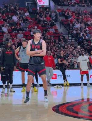赛后环节同样充满趣味。在现场音乐的伴奏下,杨瀚森背着粉色小书包,跟着啦啦队员跳起舞来,逗得队友和球迷捧腹大笑。这是NBA球队整蛊新秀的传统环节,也让现场气氛达到高潮。