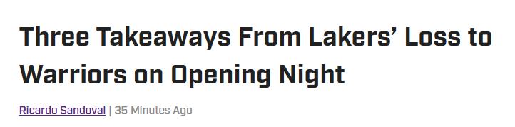 他们在下半场大部分时间的防守失灵,勇士抓住机会给予重创。继季前赛1胜5负后,湖人常规赛揭幕战再遭败绩,新赛季开局不利。显然,湖人若想在季后赛走远,还有很大提升空间。赛后,美国媒体《体育画报》对湖人揭幕战进行了点评——