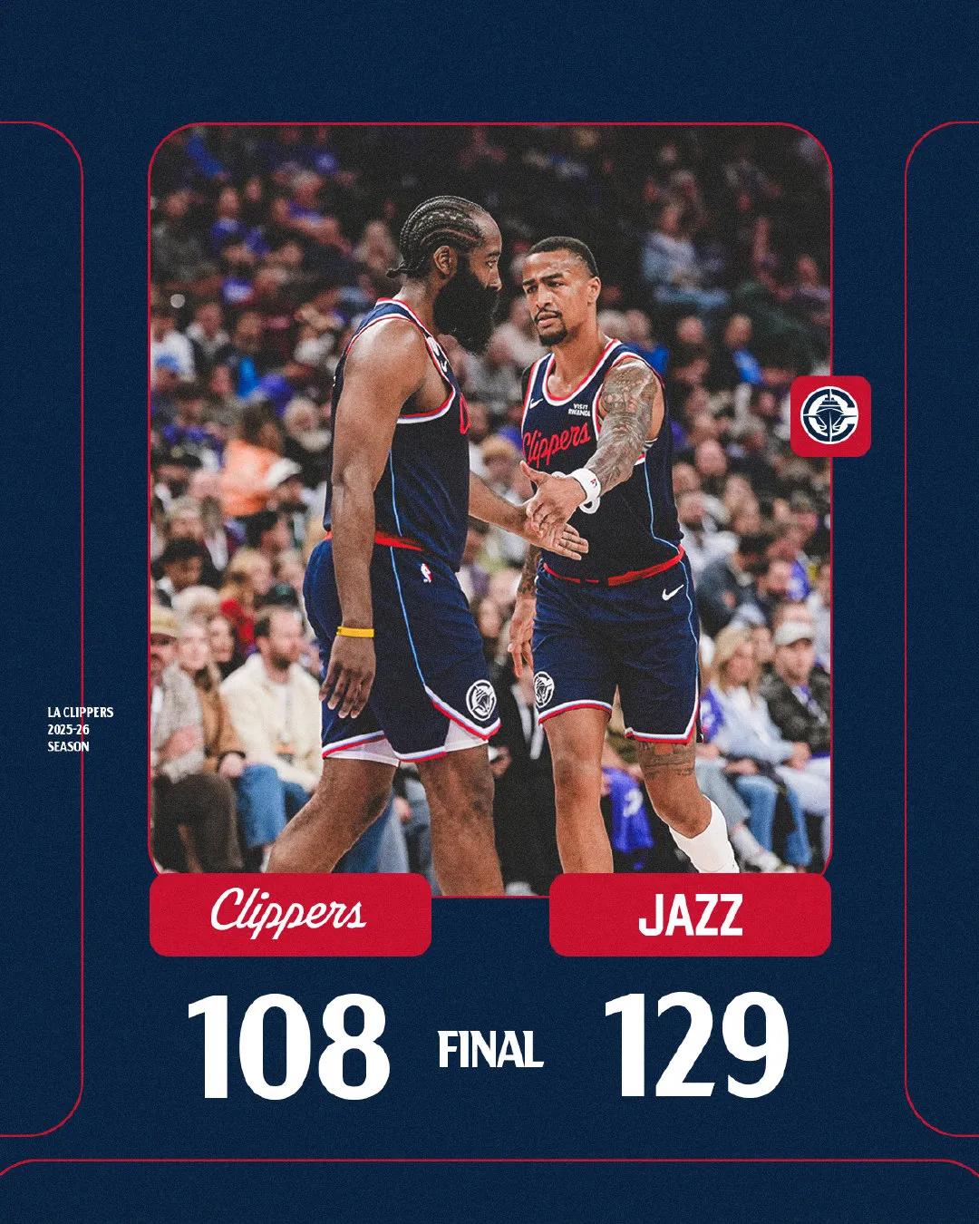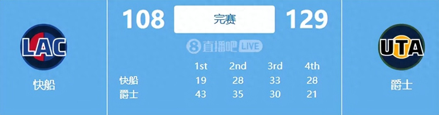 面对上赛季西部排名最末的爵士,快船尽管阵容豪华,却被对方疯狂碾压,上半场丢了78分,最终以108-129大比分落败,这样的结局赛前难以想象。