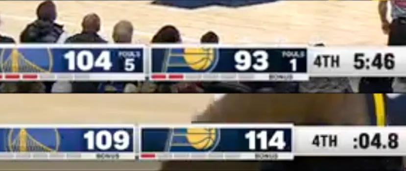 这套阵容只有库里一个控球点,而且库里甚至不自己持球过半场。追梦在后场接球,西卡上前逼抢,追梦用肘部顶了一下,被判进攻犯规,白白送给步行者一次球权。追梦第四节一开始基本上就是不断犯错,频频让步行者球员站上罚球线得分。