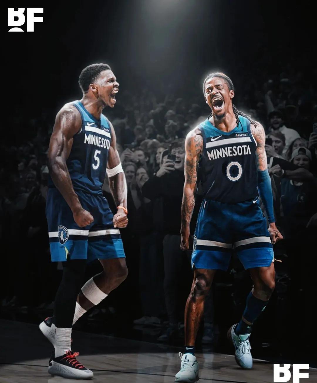 说实话,莫兰特和爱德华兹搭档相当不错,虽然两人都以出色的运动能力闻名,但爱德华兹已经培养出稳定的三分投射,可以切换到无球状态,本赛季至今场均三分命中率达到46.2%,平均每场命中3个三分,上赛季则是39.5%的命中率,场均命中4.1个三分。