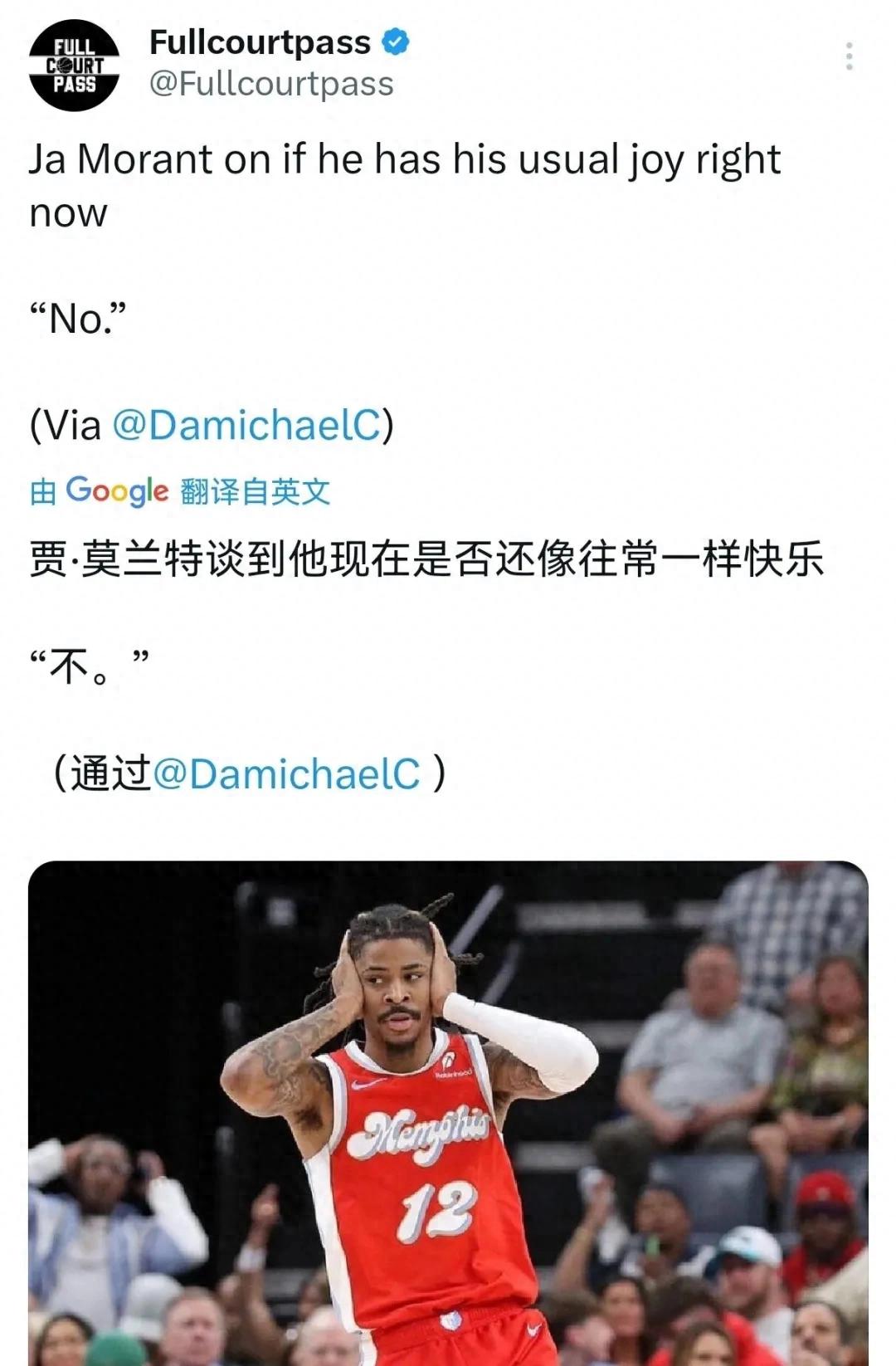 之前莫兰特因为与主教练争执,影响了球队利益,被灰熊禁赛一场,解禁后复出两场比赛,他总计出手35次命中11次(三分球11投1中),拿下35分10篮板18助攻2抢断1盖帽,但失误多达11次……