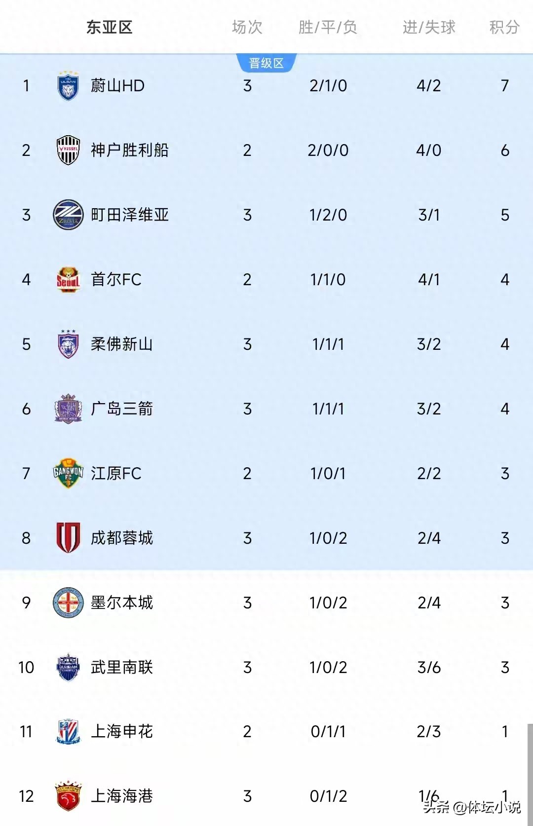 随着海港和成都分别以0-2告负,亚冠最新积分榜出炉:中超三支球队均未进入前八名