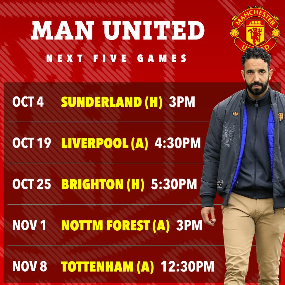 阿莫林表示自己依然有信心让曼联重新成为一支有竞争力的队伍,但接下来的比赛场场都是硬仗。继迎战强势的“黑猫”桑德兰后,曼联还将面对利物浦、布莱顿、诺丁汉森林和热刺。