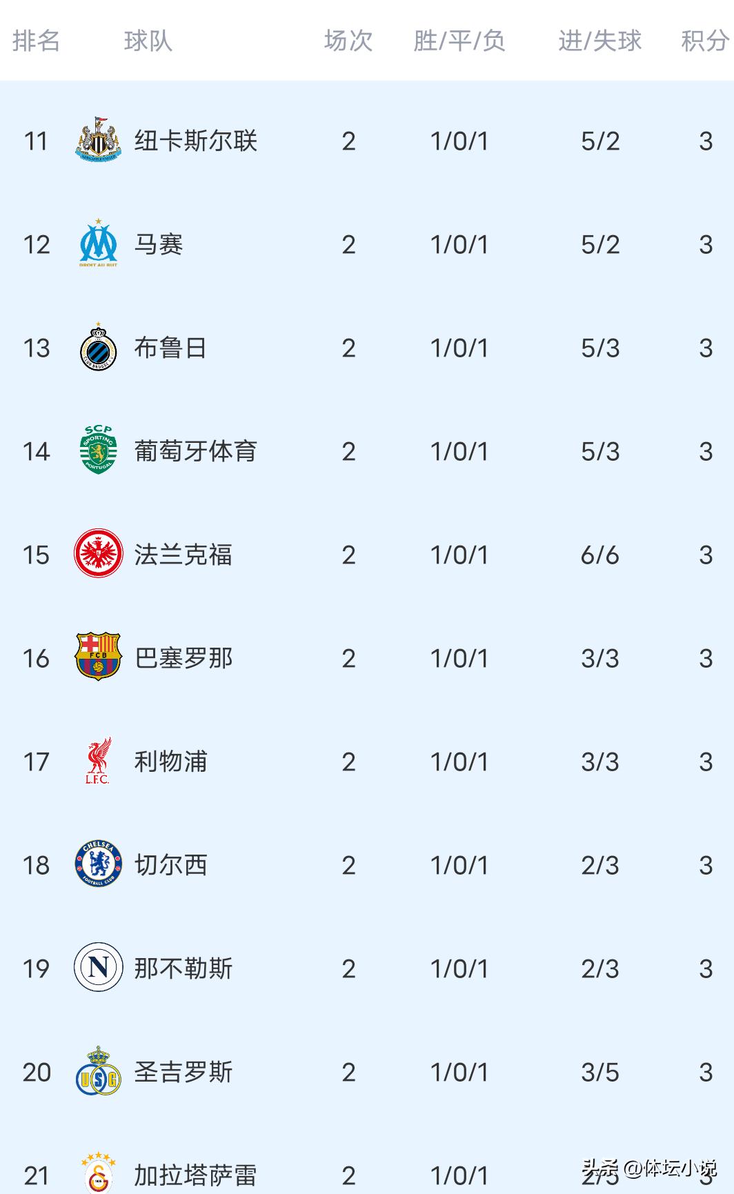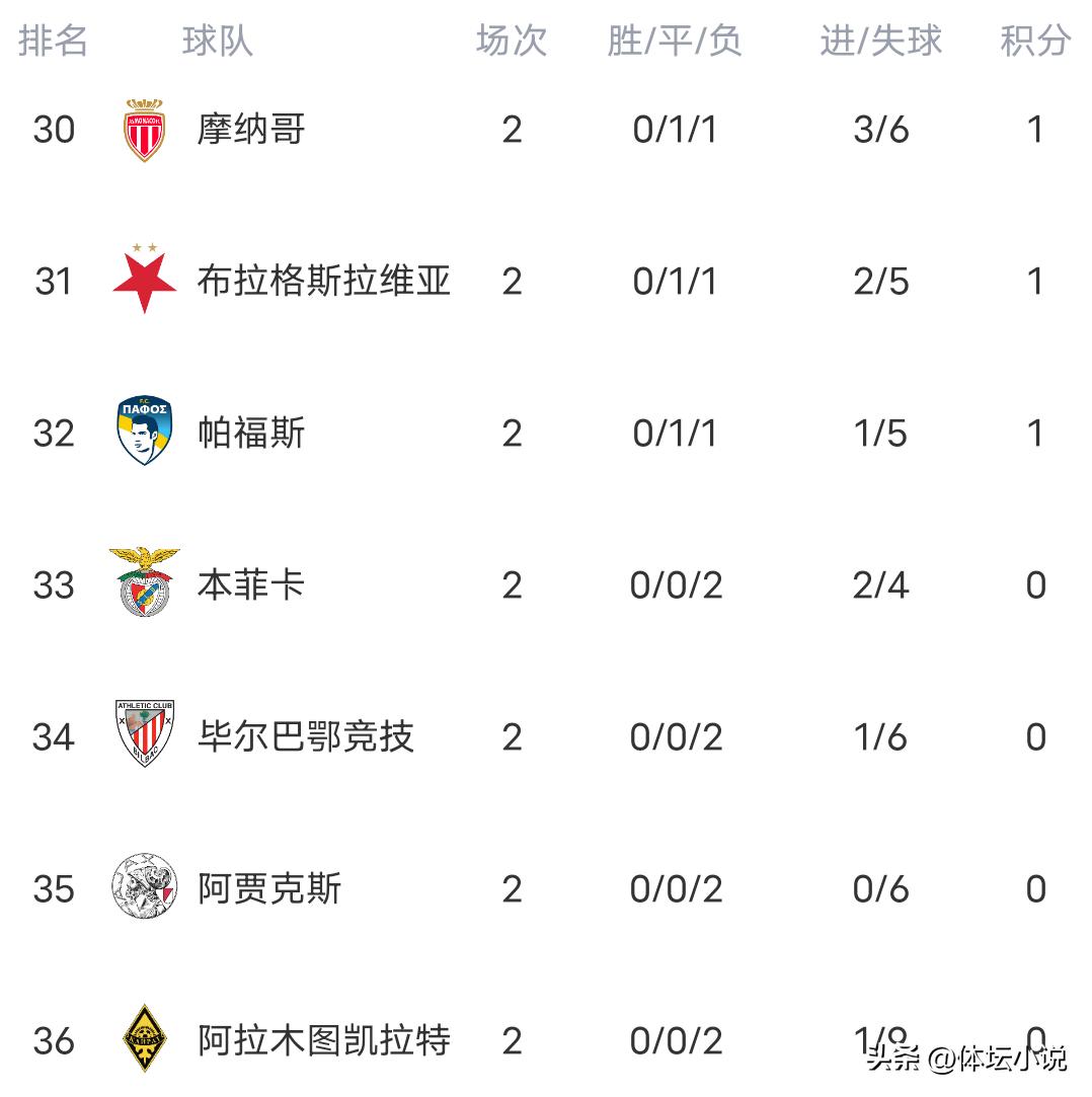 北京时间10月2日,欧冠第二轮的比赛全部结束。在几场焦点战中,残阵巴黎以2-1绝杀巴萨,曼城在领先时被摩纳哥2-2逼平,阿森纳2-0完胜奥林匹亚科斯,尤文2-2被比利亚雷亚尔扳平。最新积分榜显示,拜仁、皇马、巴黎、国际米兰、阿森纳和卡拉巴赫六支球队取得两连胜,位列前六!