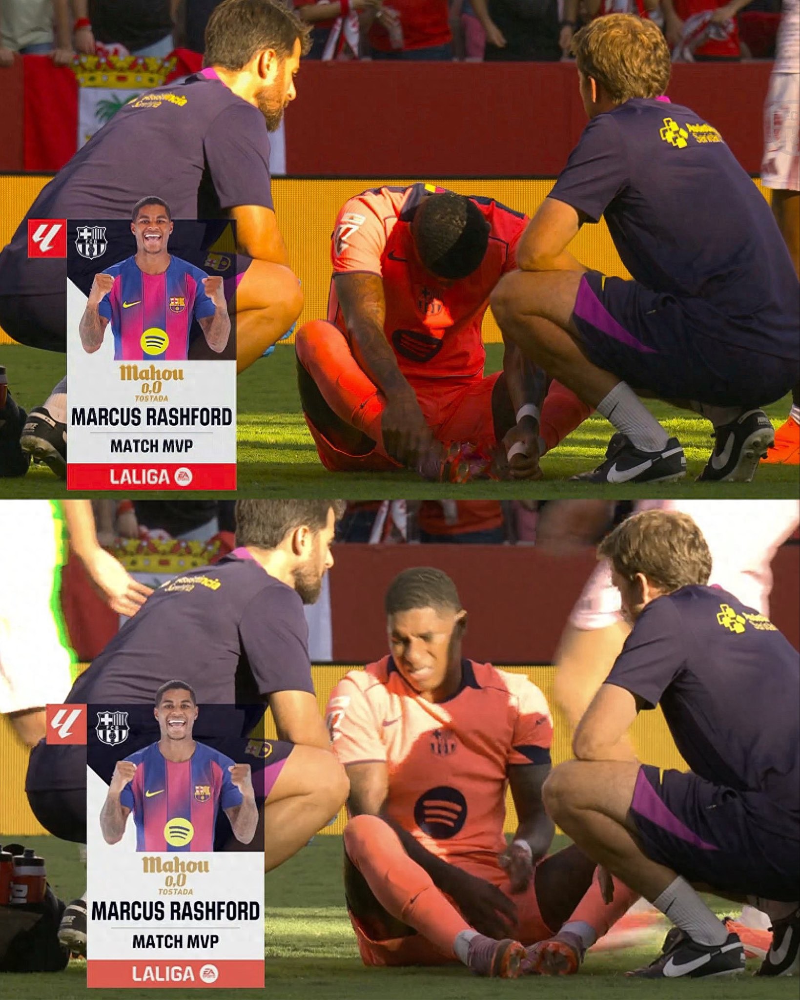 至于他一瘸一拐地离场,这其实是拉什福德在曼联时常有的表现,通常是他表达自己全力拼搏、已精疲力竭的方式。不过,巴萨的队友们可能会被他的这种态度所打动。