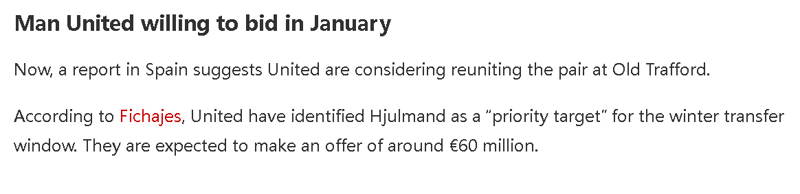 曼联在夏季转会期未能引进新的中场球员,目前计划在一月份的冬季转会期采取措施。今年夏天,俱乐部唯一的目标是布莱顿的卡洛斯·巴莱巴,但对方开出了超过一亿英镑的高价,拉特克里夫买不起。现在,西班牙「Fichajes转会网」报道称,阿莫林希望签下26岁的丹麦国脚尤尔曼德。
