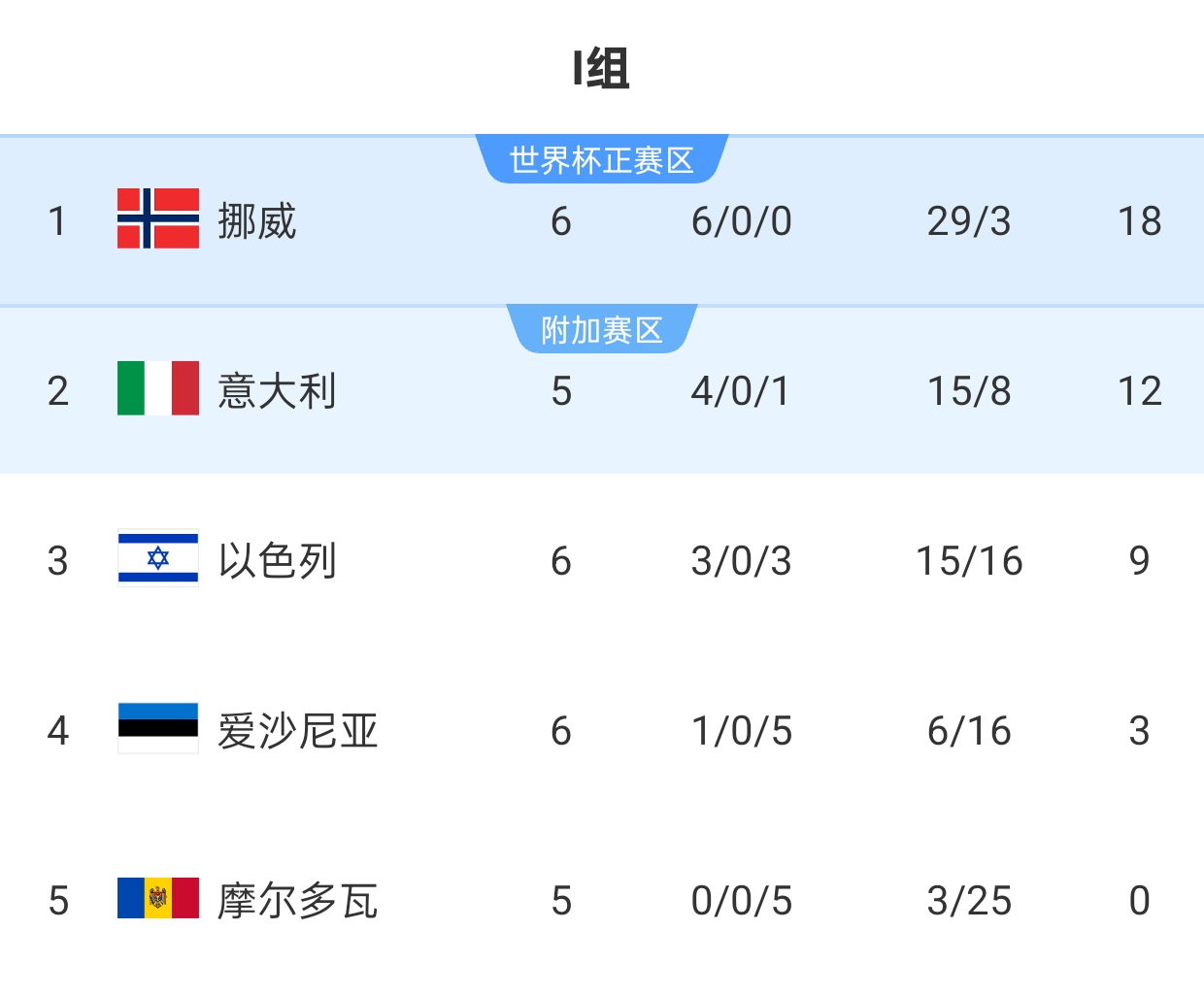 本轮世预赛结束后,挪威比意大利多赛一场,但领先6分。由于10月份国际比赛日的第二场世预赛挪威轮空,挪威足协安排了与新西兰的热身赛。挪威下一场世预赛将于北京时间11月14日凌晨1点进行,主场迎战目前6轮仅积3分的爱沙尼亚,若获胜,挪威将锁定欧洲区I组头名,直接晋级2026年美加墨世界杯。