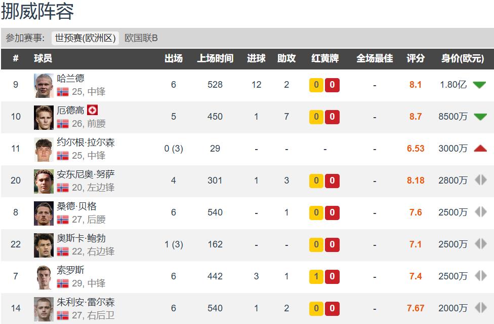 由巨星带队,年轻球员崭露锋芒的挪威国家队,有望最快在下个月晋级2026年美加墨世界杯。在本轮欧洲区世预赛中,挪威主场5-0击败以色列,曼城前锋哈兰德连续两场完成帽子戏法,2场共计8球,极大地降低了欧洲区世预赛进球的含金量。