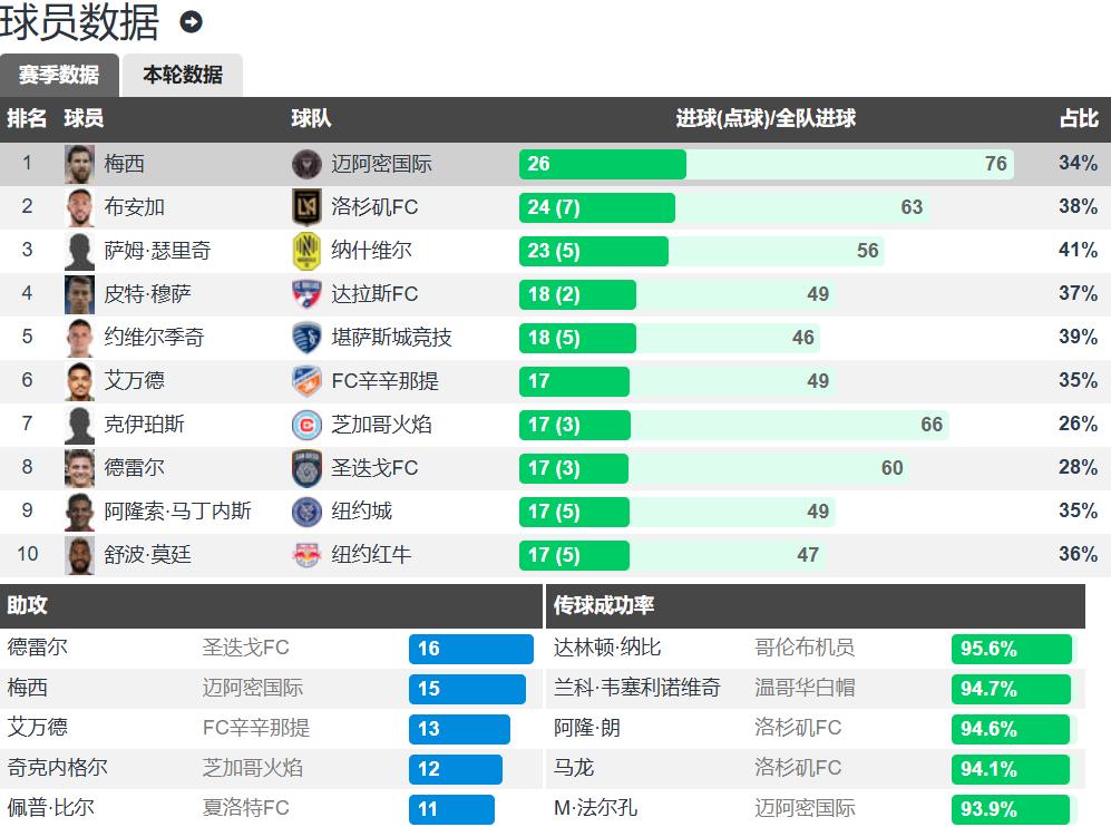 本场2射1传后,梅西本赛季美职联进球数达26球(无点球),以2球优势领跑射手榜,紧随其后的是洛杉矶FC的博安加,24球中包含7个点球;梅西本赛季助攻数已达15次,助攻榜排名第二,仅差一助攻。