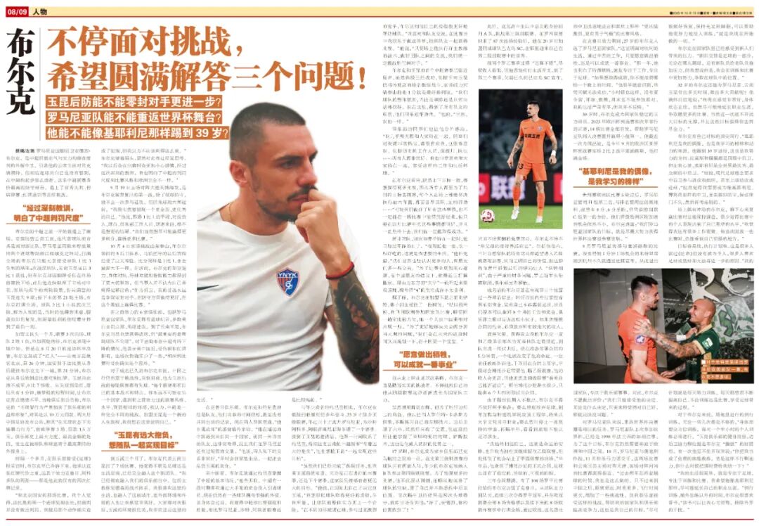 9月19日主场对大连英博海发的比赛,是布尔克解禁复出的首战。除了专注防守,他多次参与进攻,包括角球战术和远射。“我确实想展现一个更全面、更优秀的自己。”他说,那场1比1的平局,对投资人、球员、俱乐部工作人员和球迷来说都不是理想结果。“我们当然希望尽可能拿到更多积分,赢得更多比赛。”