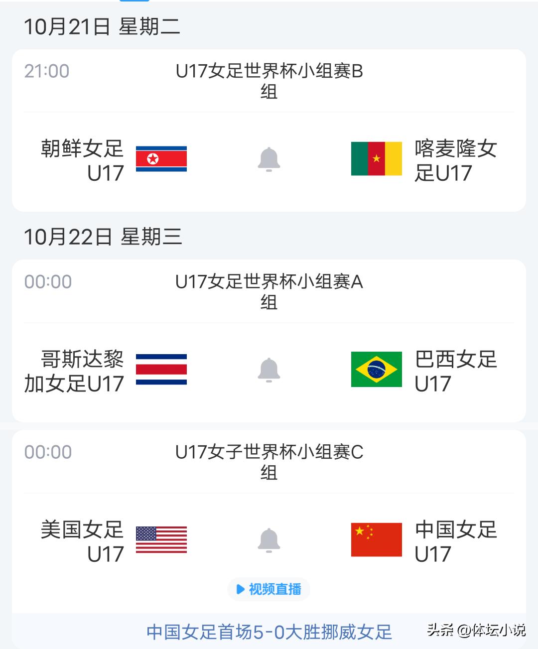 北京时间10月21日,U17女足世界杯小组赛继续进行。根据最新赛程,第二轮比赛将陆续展开,今天和明天凌晨共安排6场对决。在备受关注的焦点战中,中国女足将迎战夺冠热门美国女足,争夺小组第一。由于对手实力强大,我们压力不小,力争爆冷。不过遗憾的是,此场比赛央视没有直播,大家只能通过其他渠道观看!