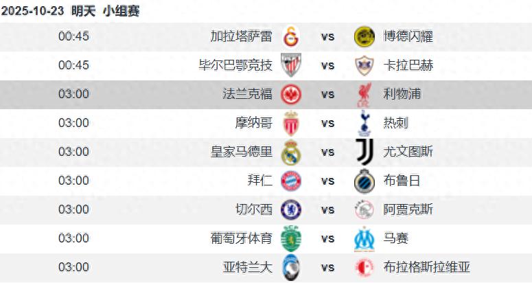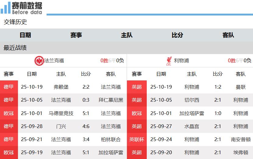 北京时间10月23日凌晨3点,欧冠小组赛第三轮,法兰克福将在主场迎战利物浦。