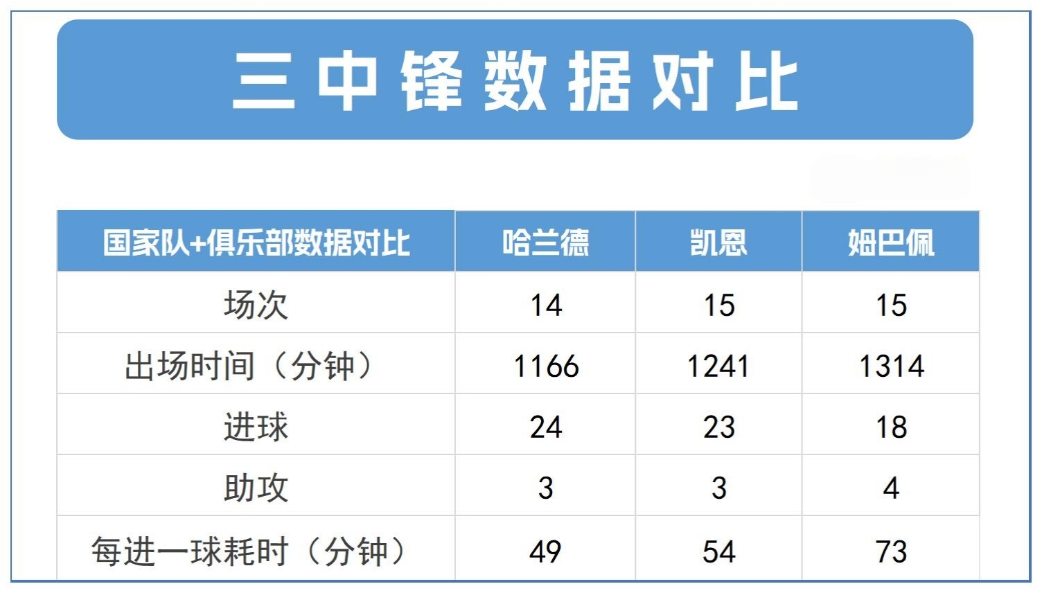 谁是现役足坛最强前锋?这个问题难以定论。但现役足坛前三大前锋是谁?答案很明确,那就是哈兰德、凯恩和姆巴佩。我们对这三位球员本赛季(俱乐部及国家队)的数据进行了详细比较。