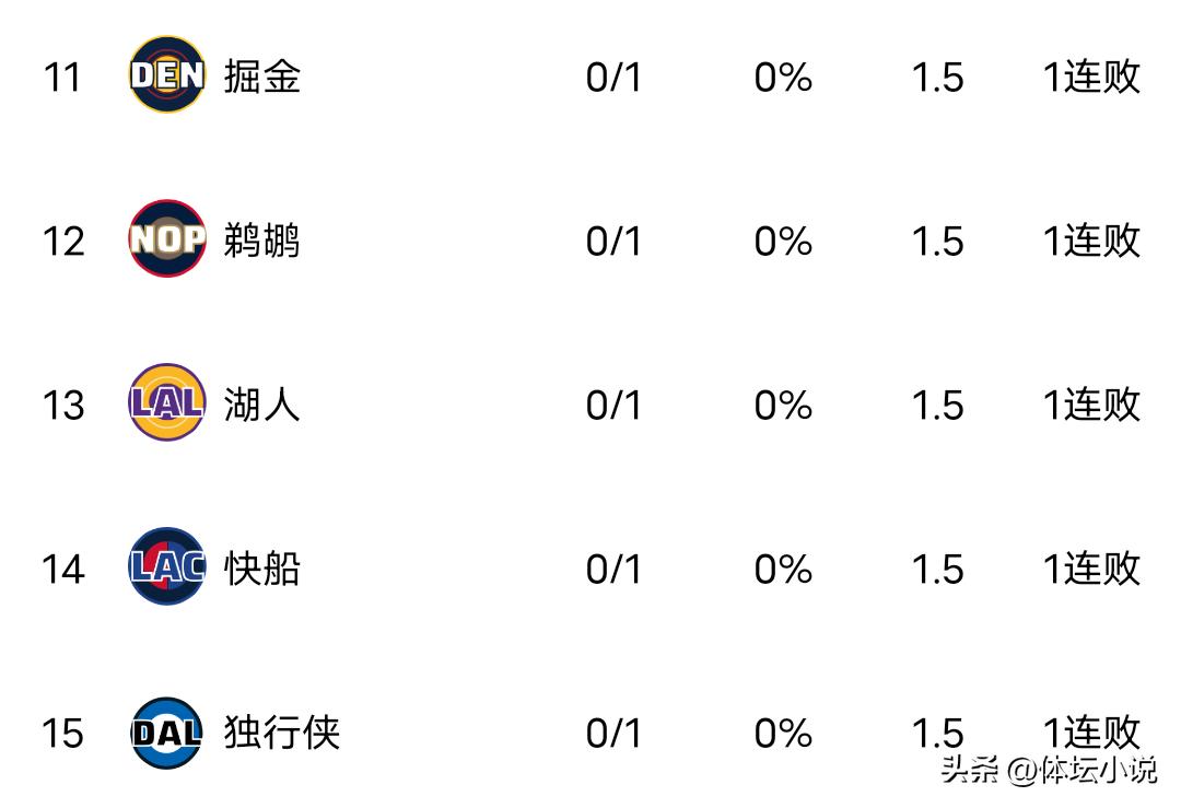 目前西部各队至少完成一轮比赛,最新排名显示,7支球队已取得首胜,勇士和雷霆以两连胜领跑。湖人排名第三,快船位列第二,独行侠垫底!