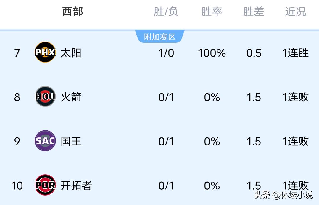北京时间10月24日,NBA常规赛继续进行,今天是第三个比赛日,只有两场比赛,均打入加时,比赛非常激烈。雷霆经过双加时以141-135击败步行者,掘金则在单加时以127-135输给勇士。这样,西部最新排名出炉,勇士凭借两连胜登顶,雷霆同样取得两连胜紧跟其后,掘金排名第11!