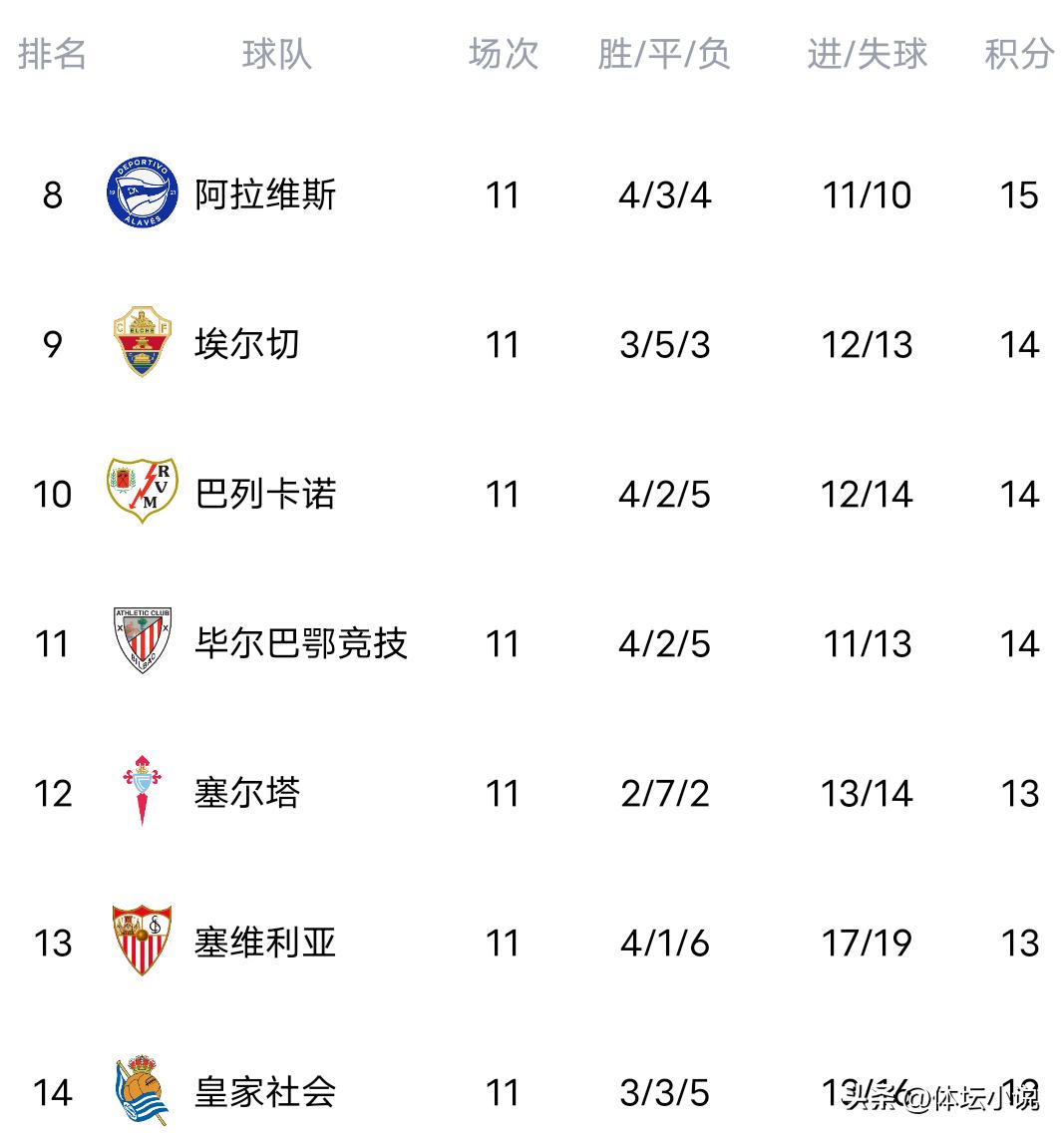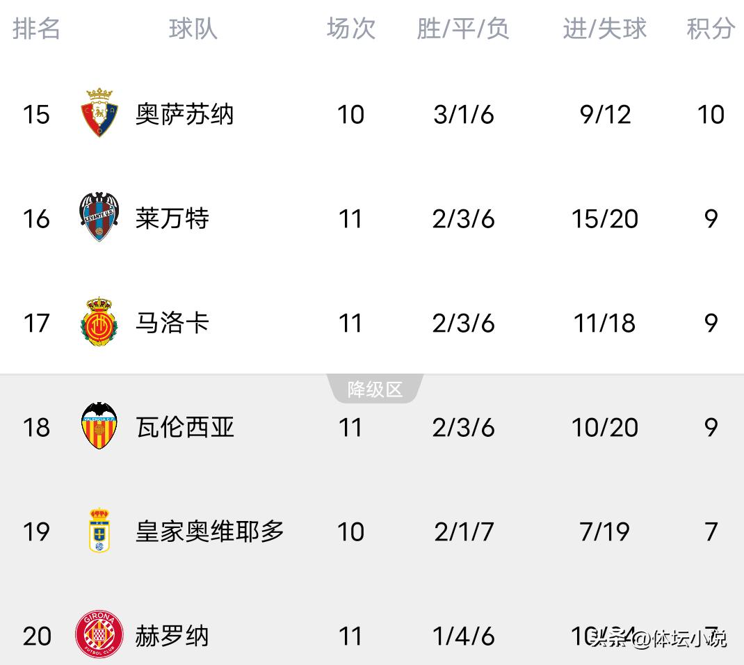 北京时间11月3日,西甲第10轮比赛持续进行。在备受瞩目的三场较量中,阿拉维斯以2比1力克西班牙人,巴萨3比1击败埃尔切,皇家贝蒂斯3比0战胜马洛卡。最新积分榜显示,皇马稳坐第一宝座,领先巴萨5分,巴萨位居第二,马竞第四,贝蒂斯第五,西班牙人第六!