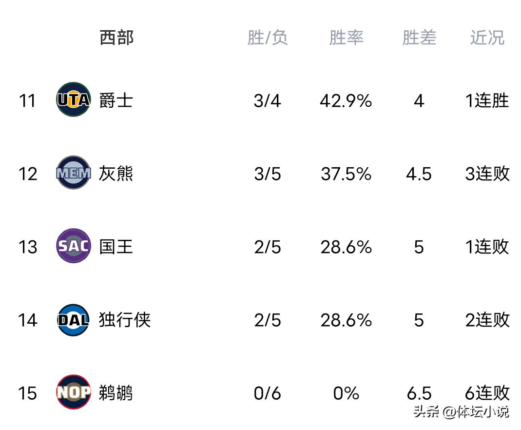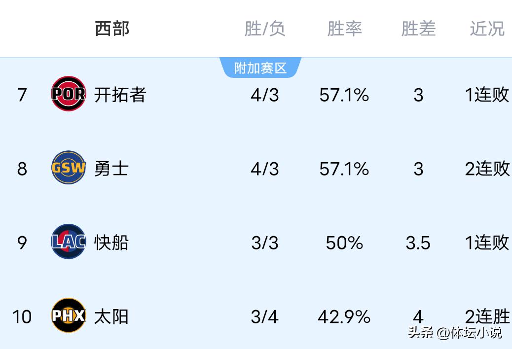北京时间11月4日,NBA常规赛继续进行,今天又有几场比赛落幕,森林狼末节强势爆发以125-109击败篮网,爵士以105-103绝杀凯尔特人,缺少主力的独行侠以102-110不敌火箭,活塞以114-106战胜灰熊,国王以124-130惜败掘金,缺阵主力的湖人以123-115战胜开拓者,热火以120-119险胜快船。最新西部排名出炉,前两名保持不变,湖人4连胜升至第三,掘金第四,火箭4连胜排第五,森林狼第六,开拓者第七,快船第九!