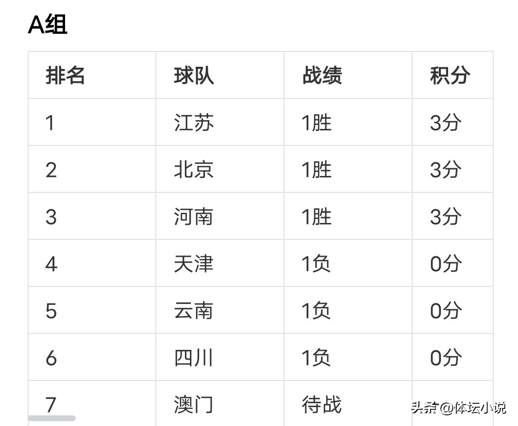 目前首轮比赛已经结束,最新积分榜请见上图,澳门和香港尚未出战,第二轮比赛将于今日打响,期待更多精彩对决,让我们拭目以待,继续加油!
