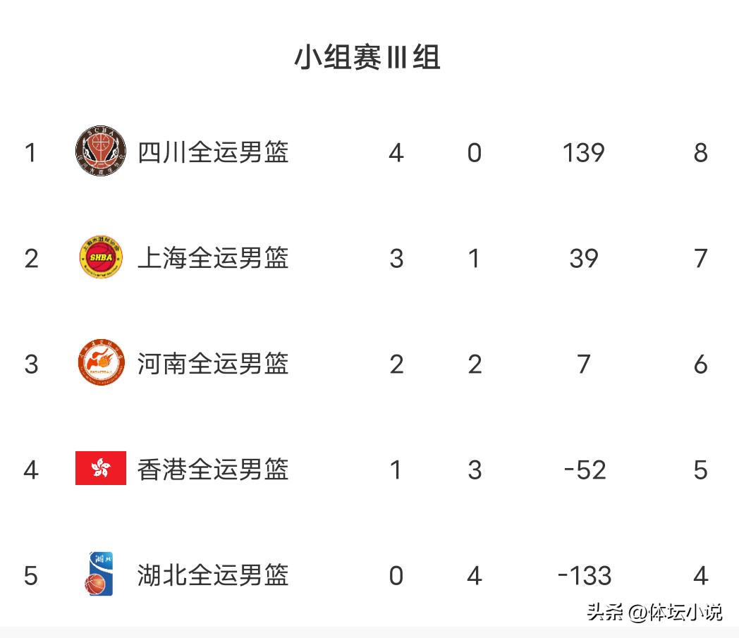 第三小组两场比赛中,上海对阵湖北展现出强大统治力,场上占据绝对优势,锋线火力凶猛,分差不断拉大,比赛早早失去悬念,上海轻松战胜湖北锁定小组第二。而香港实力不足,面对河南被动挨打,场上被牢牢压制,赢球希望渺茫,最终河南气势如虹轻松击败香港!