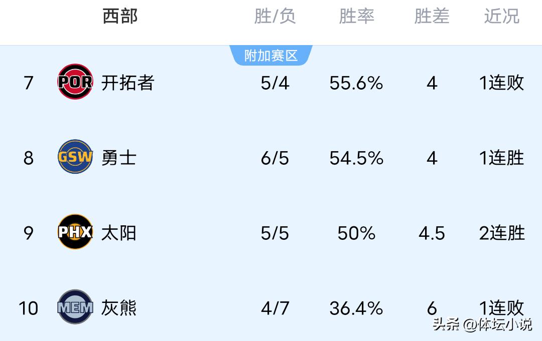 北京时间11月10日,NBA常规赛继续进行。在最新结束的几场较量中,火箭以122-115逆转击败雄鹿,雷霆在落后19分的情况下以114-100完成对灰熊的大逆转,步行者溃败以83-114惨输勇士,森林狼势如破竹以144-117横扫国王。至此,西部最新排名揭晓:雷霆第一,火箭第五,森林狼第六,勇士第八!
