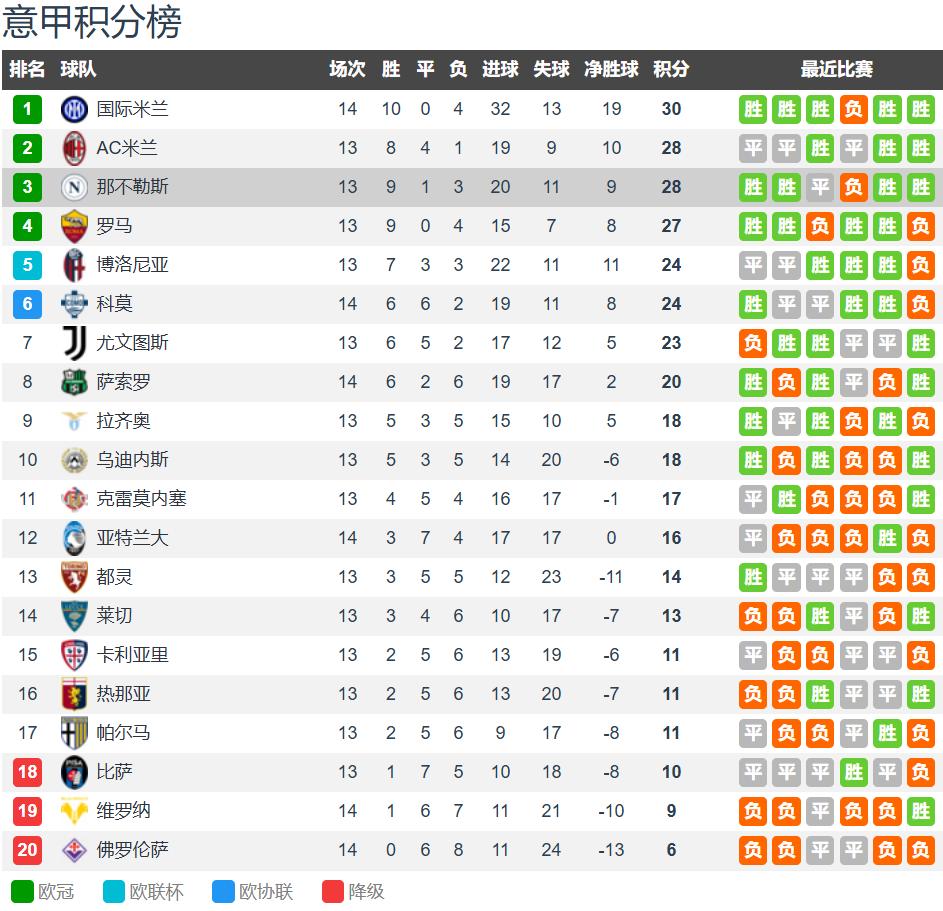 双方最近6次交锋,那不勒斯取得4胜1平1负的优势成绩。
