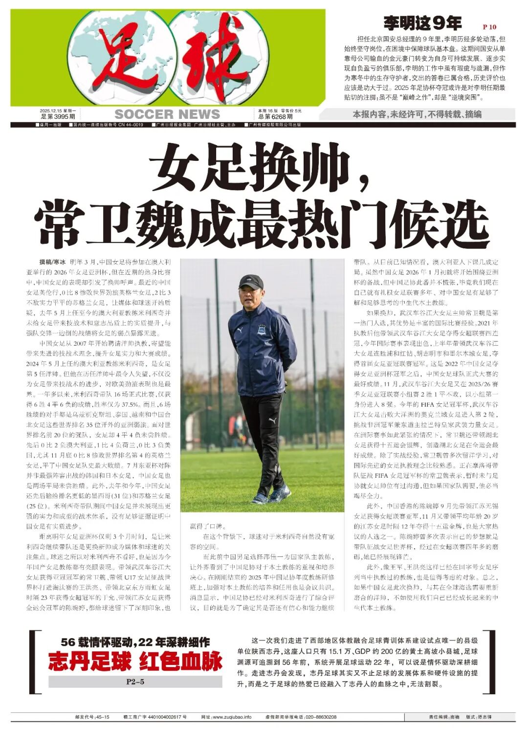距离明年亚洲杯仅剩三个月,是否继续由米利西奇执教还是更换新帅,成为媒体和球迷关注的焦点。球迷对米利西奇不看好的原因之一,是今年多位国产女足教练表现亮眼。带领武汉车谷江大女足夺得亚冠冠军的常卫魏、率U17女足打进世界杯淘汰赛的王洪亮、带领北京东方雨虹女足时隔23年夺得女超冠军的于允、带领江苏女足摘得全运会冠军的陈婉婷,都给球迷留下了深刻印象并赢得了良好口碑。